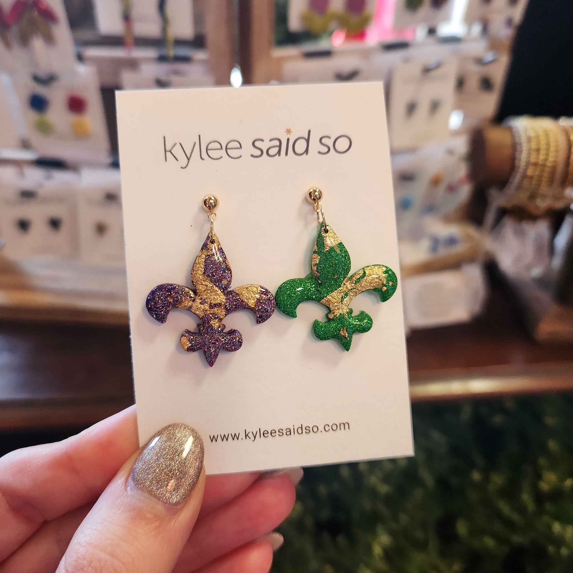Glittered and resin coated polymer clay earrings with gold filled ball posts - safe for sensitive ears!